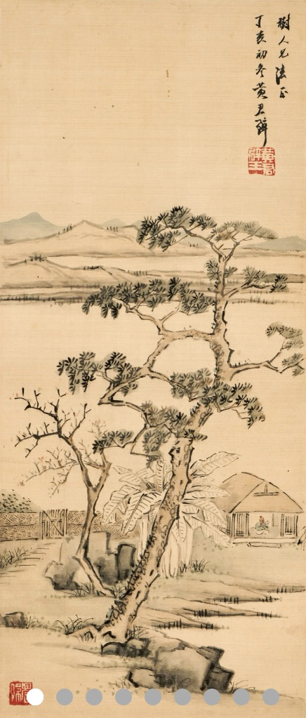 秋高煙嶺 鑒藏者簡介:蘇幹英(1910-1996),上海暨南大學教授,後任復旦大學教授。1934年拜黃賓虹為師,與黃賓虹有二十多年交往,情誼篤厚,有致黃賓虹書信一百五十余封現藏浙江博物館。作者簡介:黃賓虹現代傑出國畫大師。原名懋質,字樸存、樸人,亦作樸丞、劈琴,號賓虹,別署予向、虹叟、黃山山中人等。原籍安徽歙縣,出生於浙江金華·幼喜繪畫,課餘之暇,兼習篆刻。在他90歲壽辰的時候,被國家授予"中國人民優秀的畫家"榮譽稱號,有“再舉新安畫派大旗,終成一代宗師”之譽。 |