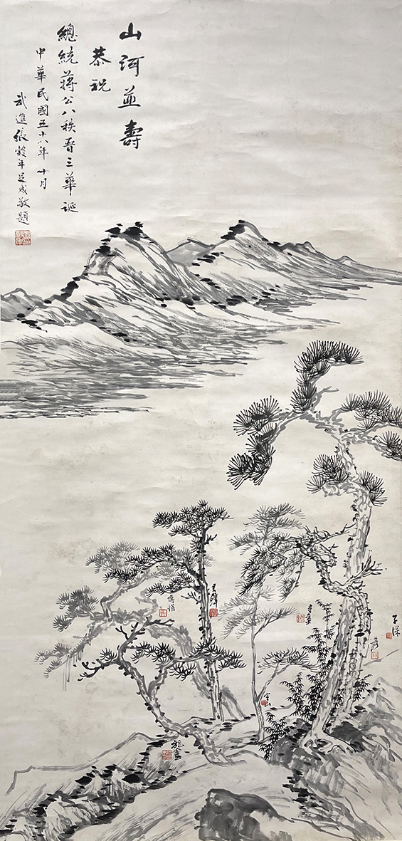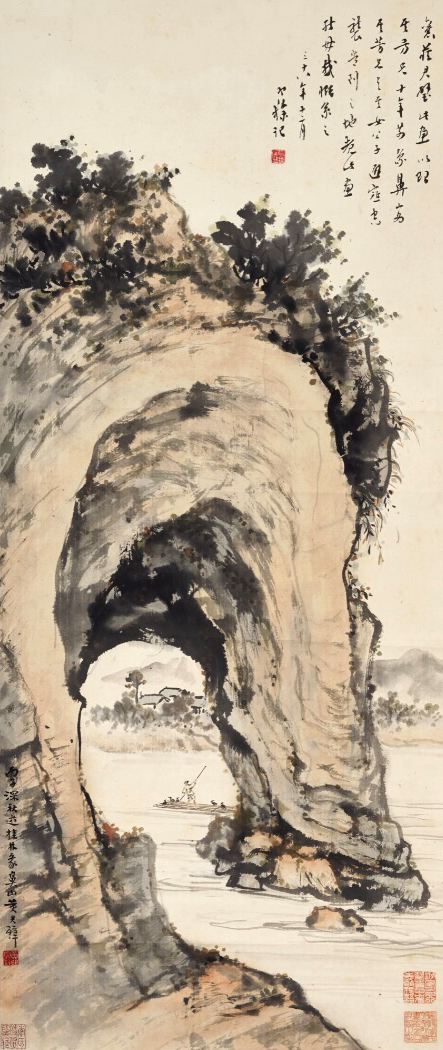桂林象鼻山 作者簡介:黃君璧原名允瑄,晚號君翁,本名韞 之,以號行,廣州南海縣西樵人。中國現代著名國 畫藝術家、教育家·致力放山水畫,尤以畫雲水瀑 布為長·1949年遷居臺灣,任今臺灣師範大學藝 術系教授、主任。 |