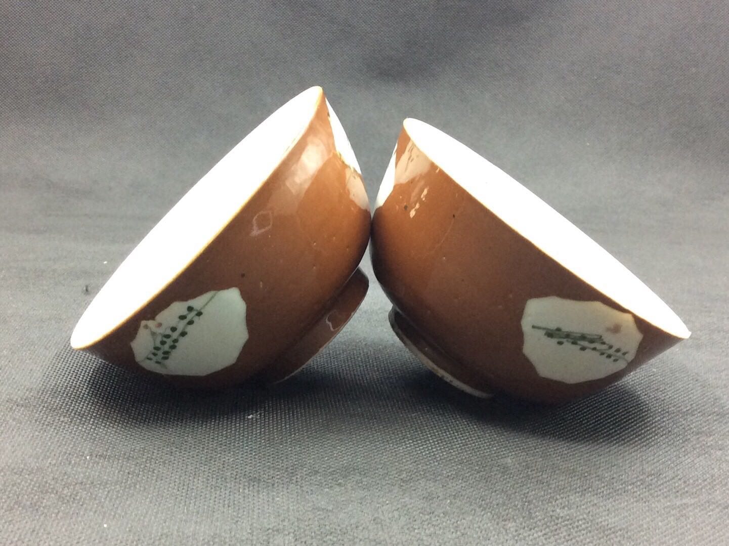 清中期醬釉開窗繪花卉碗壹對 |