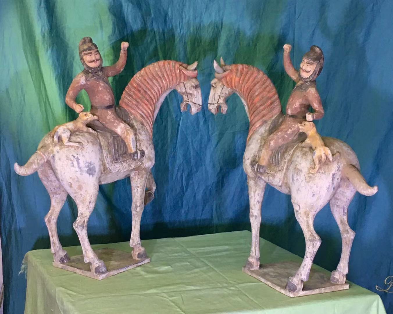 唐代陶加彩胡人騎馬一對,附熱釋光檢測證書 |