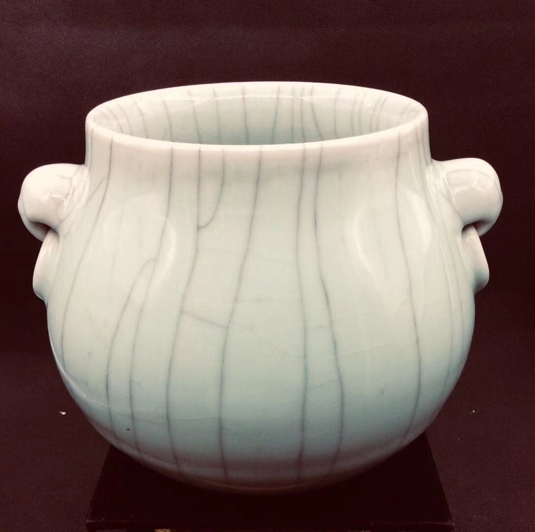 清中期哥釉獸耳大香爐 |