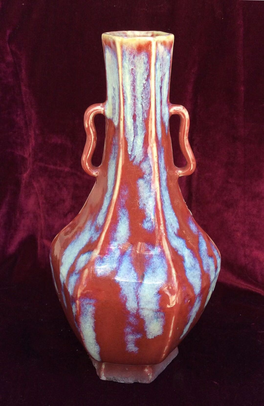 清中期?變釉六棱雙耳瓶