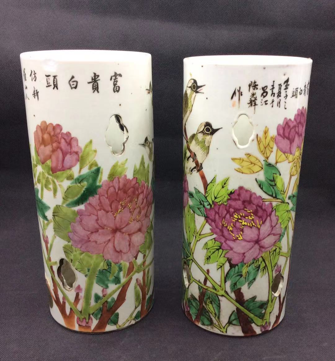 ?晚名家?光詳繪花卉帽筒一對