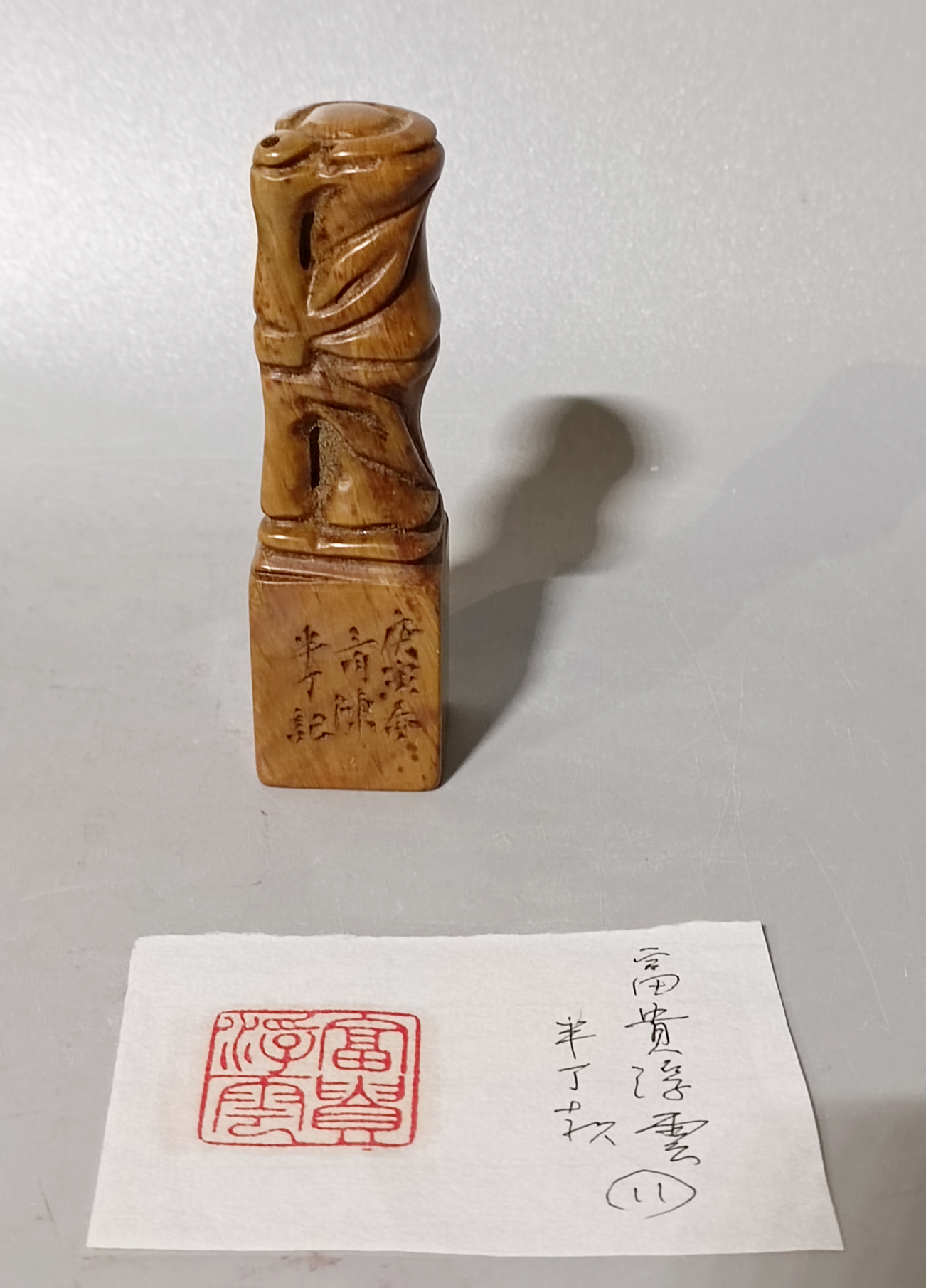 壽山石竹鈕章富貴浮雲 半丁款