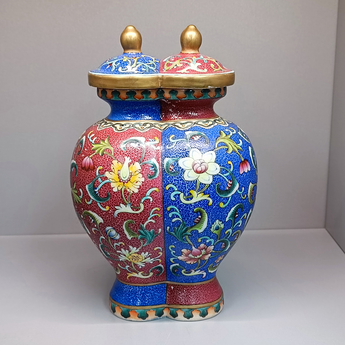 粉彩花卉孖瓶連蓋 大清乾隆年制