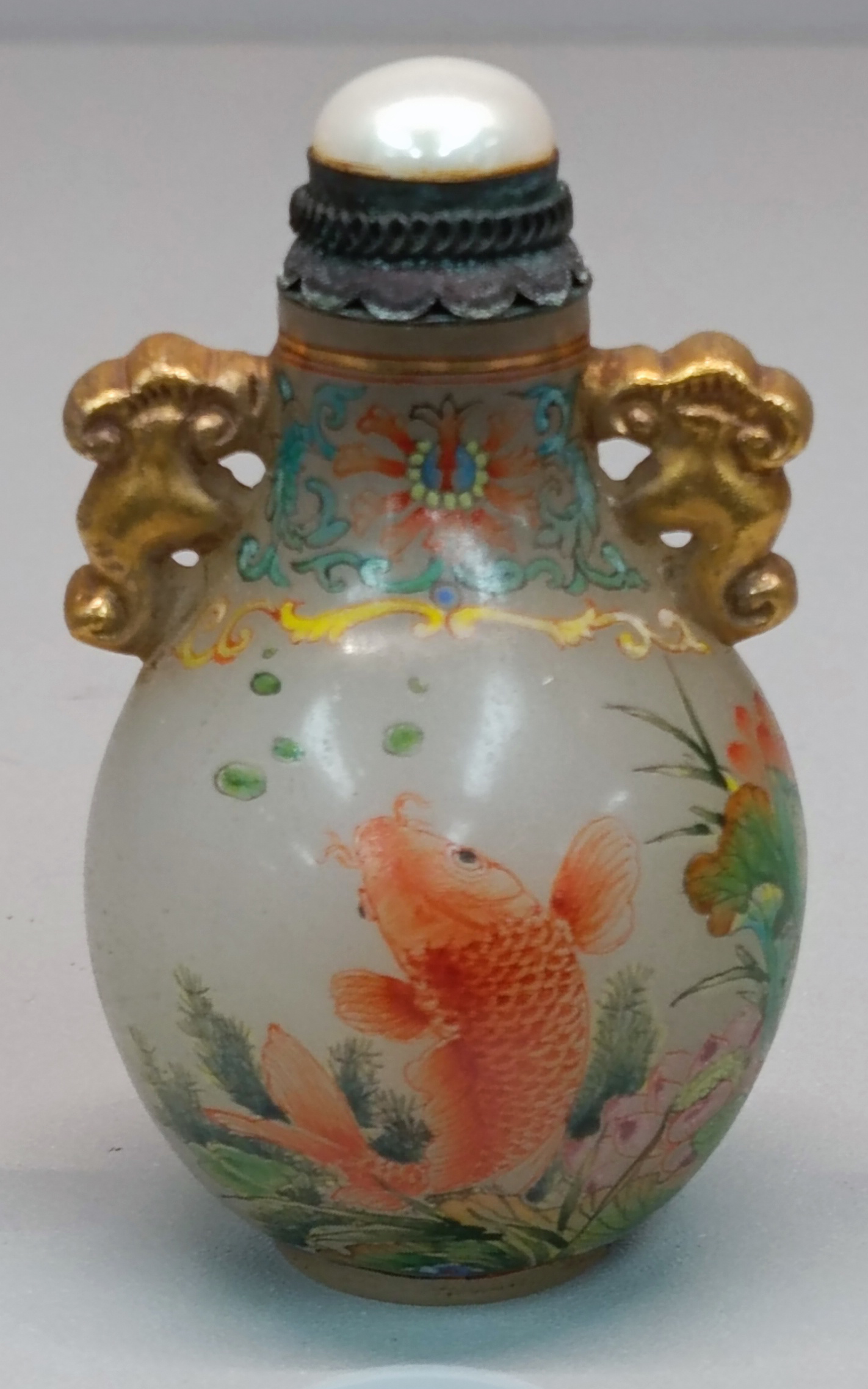 乾隆款料胎琺瑯彩繪蓮花魚樂紋鼻煙壺